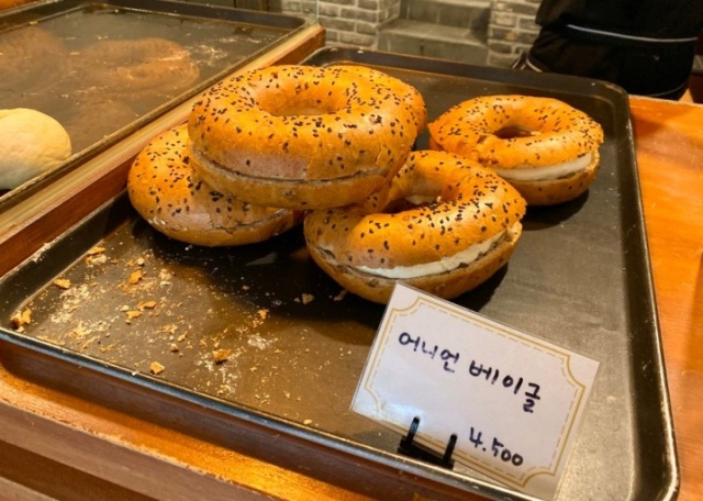 이곳의 대표 빵으로는 ‘마늘 바게트’와 ‘어니언 베이글’이 있습니다. 매장은 아담하지만, 다양한 종류의 빵이 나오며, 모든 메뉴가 시식이 가능해 이 곳에서 빵을 처음 구매하는 사람들도 부담 없이 시식 후 빵 구매가 가능합니다.