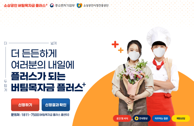 ▶ 소기업 / 소상공인 : 소기업, 소상공인인 경우, 소상공인 버팀목 자금 플러스 사이트에서 신청과 확인이 가능합니다. 문의 전화는 다음과 같습니다. 1811-7500
