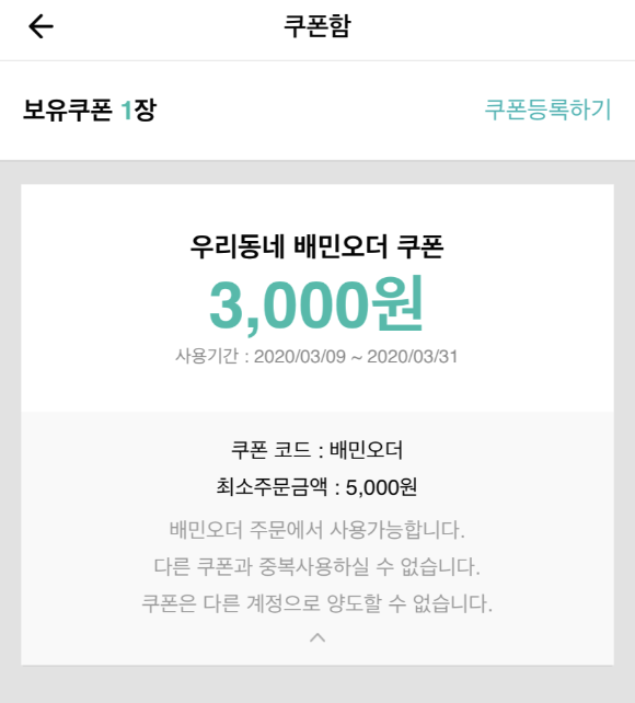 3. 쿠폰 등록하기에 '배민오더' 라고 입력합니다.