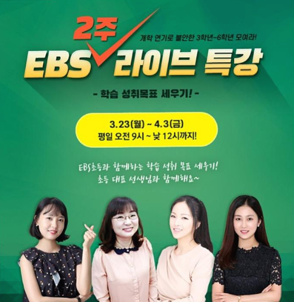 개학이 연기가 되면서 걱정이 많았는데 다행히 EBS에서 2주간 라이브 특강을 한다고 합니다.