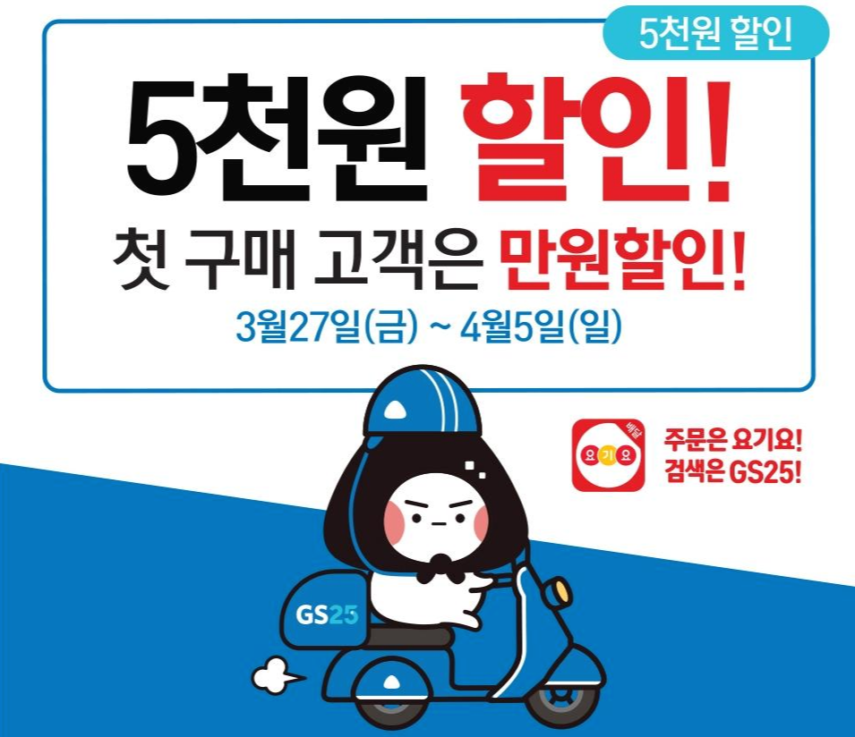 GS25 사이트에서 쿠폰 다운 받고 요기요에서 주문하면 됩니다.