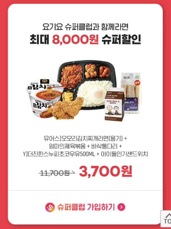 요기요 첫 주문은 아니지만 요기요 슈퍼클럽 회원이면 최대 8,000원 할인.