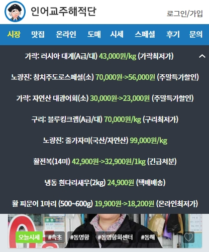그리고 인어 교주 해적단의 운영자 분들이 직접 확인하고 인증한 가게들만 올려놓기 때문에 일차 검증이 돼서 방문했던 가게들 모두 친절하시고 맛도 좋았어요. 꼭 여기에 올라온 가게들이 아니더라도 매일 시세 업데트가 이루어져서 시세 확인하고 수산물 사기도 좋아요.