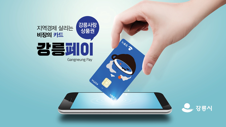 강릉페이는 강릉사랑 상품권의 또 다른 이름으로 강릉시 지역경제 활성화를 위해 강릉시 전역에서 사용 가능한 모바일 기반의 충전식 카드형 지역화폐입니다.