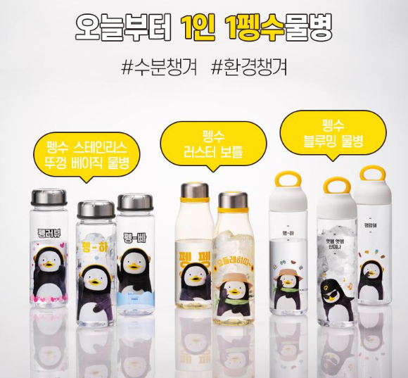 새로운 펭수 굿즈를 기다려온 펭수팬들에게는 희소식이 아닐 수 없는데요, 펭수 물병은 사용자의 취향에 따라 선택할 수 있도록 용기 종류와 디자인을 다양하게 출시했습니다.