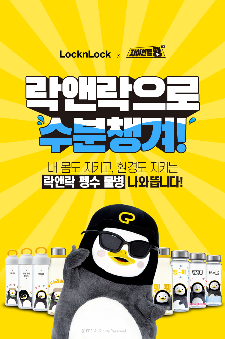 국민 반찬통으로 유명한 락앤락에서 펭수와 콜라보로 펭수 물병 시리즈 3종을 출시했다고 합니다.