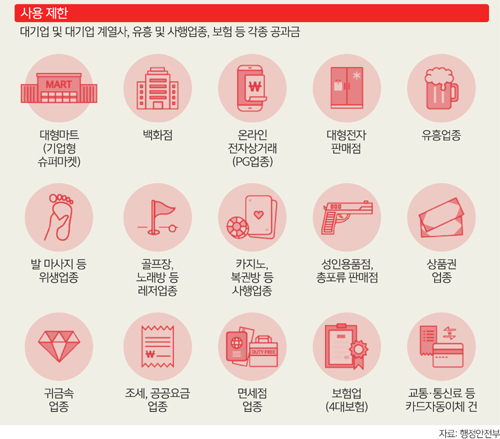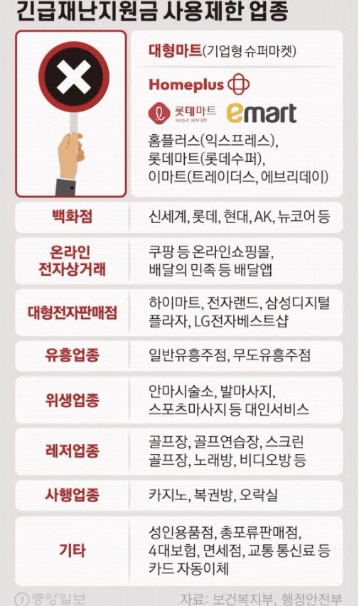 정부에서는 소상공인과 지역상권 활성화를 위해 사용처에 제한을 두고 긴급재난지원금을 지급하고 있으며, 기본적으로 백화점, 대형마트 및 기업형 슈퍼마켓, 온라인 쇼핑몰, 대형가전제품 매장 등에선 지원금을 사용할 수 없습니다.