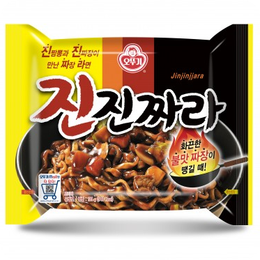 '진진짜라'는 오뚜기의 히트제품인 '진짬뽕'과 '진짜장'을 최상의 비율로 조합하여 탄생시킨 매콤한 불맛짜장입니다. '진짬뽕'의 화끈한 불맛과 함께 진하고 깊은 '진짜장'의 맛이 어우러진 제품으로, 두껍고 넓은 면을 사용해 쫄깃하고 탱탱한 중국식 면 특유의 맛을 살렸다고 합니다.