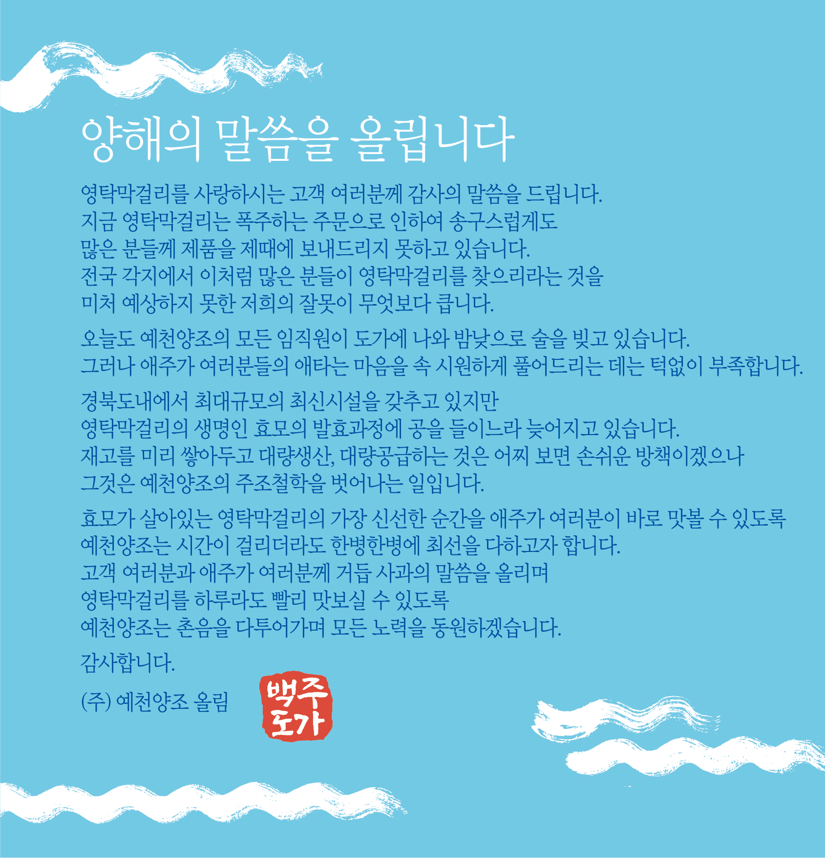예천양조는 예를 다하여 좋은 술을 빚습니다. 미스터트롯 영탁과 효모가 살아있어 신선한 막걸리가 만났다 영탁막걸리