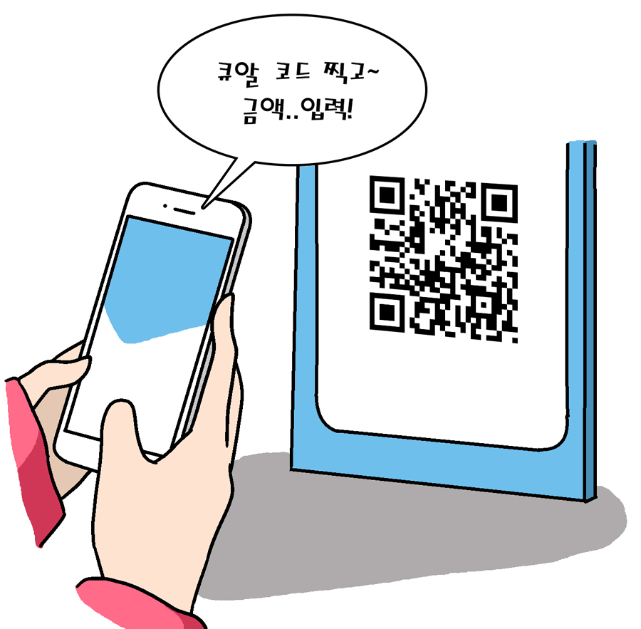 앱을 실행한 후 결제하기 버튼을 클릭합니다. 가맹점에 비치된 QR코드를 스캔한 후 결제 금액을 입력한 하면 본인 인증을 거쳐 결제가 완료됩니다.