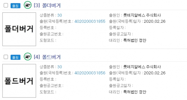 7월 1일에 새롭게 출시할 햄버거가 접는 형태의 햄버거이기 때문에 이런 광고를 하고 있는 것이 아닌가 싶은데요, 실제로 롯데리아 측에서 특허청에 ‘폴더(Folder) 버거’라는 상표를 출원한 것으로 확인되었습니다.