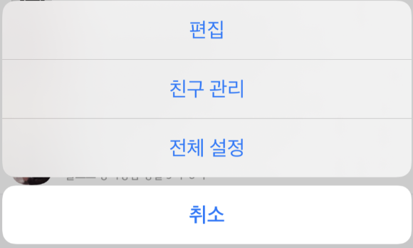 4. 하단에 '생일인 친구 보기' 메뉴를 비활성화합니다.