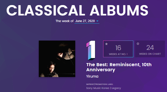 창작 피아노 연주곡으로 빌도드 클래시컬 앨범에 오른다는 것은 매우 어려운 일로 16주째 1위를 기록하고 있는 성과는 안드레아 보첼리, 존 윌리엄스도 기록하지 못했던 성과입니다.