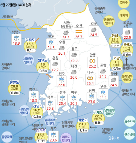 - 2018년과 2019년은 6월26일께 장마가 시작
