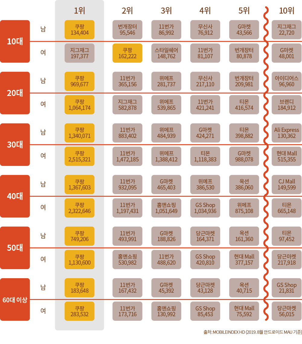 쿠팡은 한국기업평판연구소에서 온라인 쇼핑앱 브랜드 평판 1위, 와이즈앱, 대학내일연구소, 오픈서베이에서 조사한 한국인이 가장 많이사용하는 쇼핑앱 1위에 오른 바 있으며,