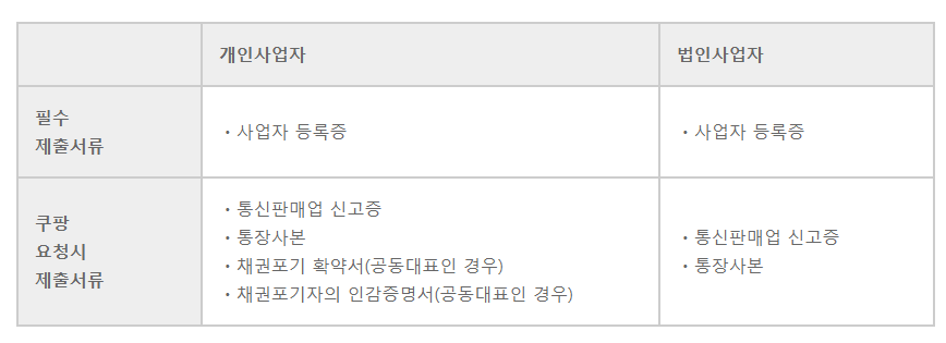 쿠팡 마켓플레이스에서 입점 신청을 하기 위해서는 사업자등록증과 개인정보 입력만 하면 간단히 입점 신청이 완료됩니다.