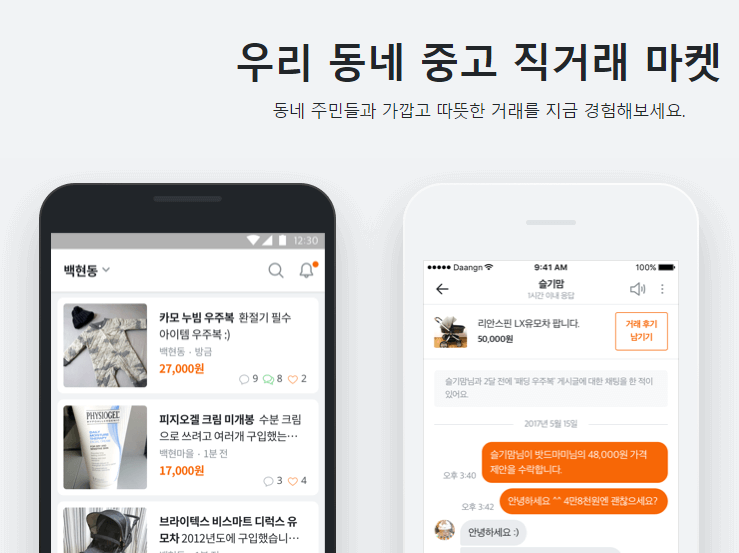 당근마켓의 기본 취지는 '우리 동네 중고거래' 라는 타이틀에서도 알 수 있듯이 내가 살고 있는 동네에서 신뢰를 가지고 믿을 수 있는 중고 물품 거래를 하자는데 있습니다.
