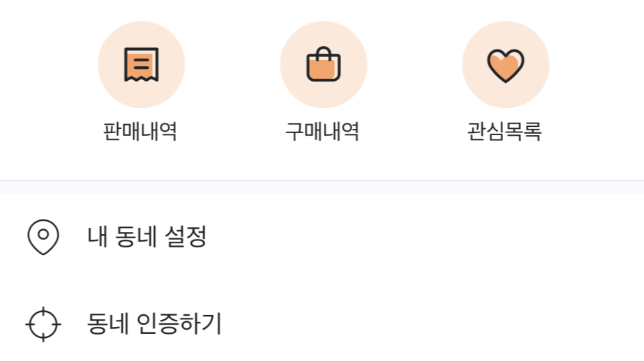 ▶ 해당 메뉴에는 내 동네가 한 곳 이미 설정되어 있으며, 추가로 1개를 더 설정할 수 있습니다. 이는 직장이나 혹은 자주가는 타 지역에서도 거래할 수 있게 고려해서 만들어 놓았기 때문입니다.