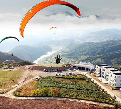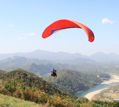 그러나 양방산에는 전망대와 카페 산 말고도 유명한 것이 하나 더 있습니다. 바로 양방산 정상에서 뛰어내려 스릴을 즐길 수 있는 패러글라이딩 입니다.