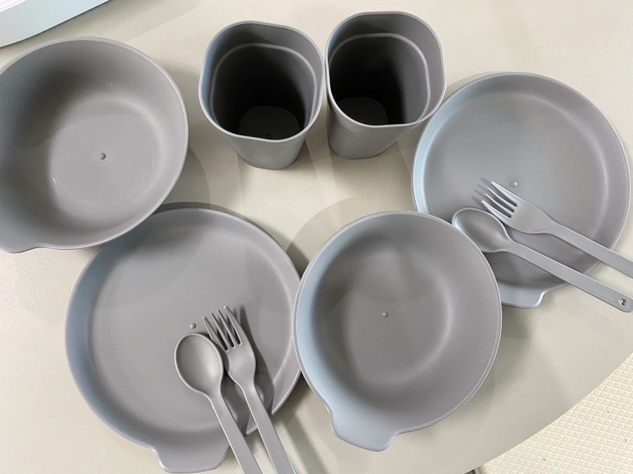 투썸 피크닉 테이블에는 구성품으로 그레이 컬러의 2인용 식기세트가 함께 제공됩니다. 이 식기 세트는 상판 아래쪽에 고정될 수 있도록 디자인 되어 있어 이동 시에도 흔들림 없이 안정적으로 이동이 가능합니다.