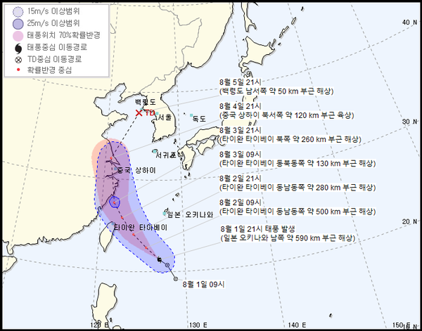 - 08월 03일 21시 타이완 타이베이 북북서 쪽 약 160 km 부근 해상