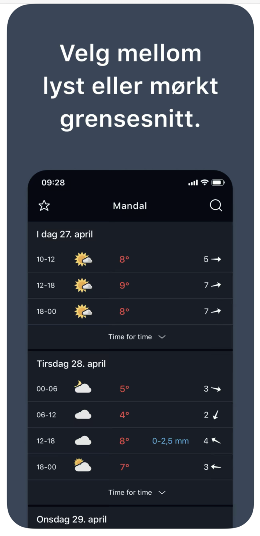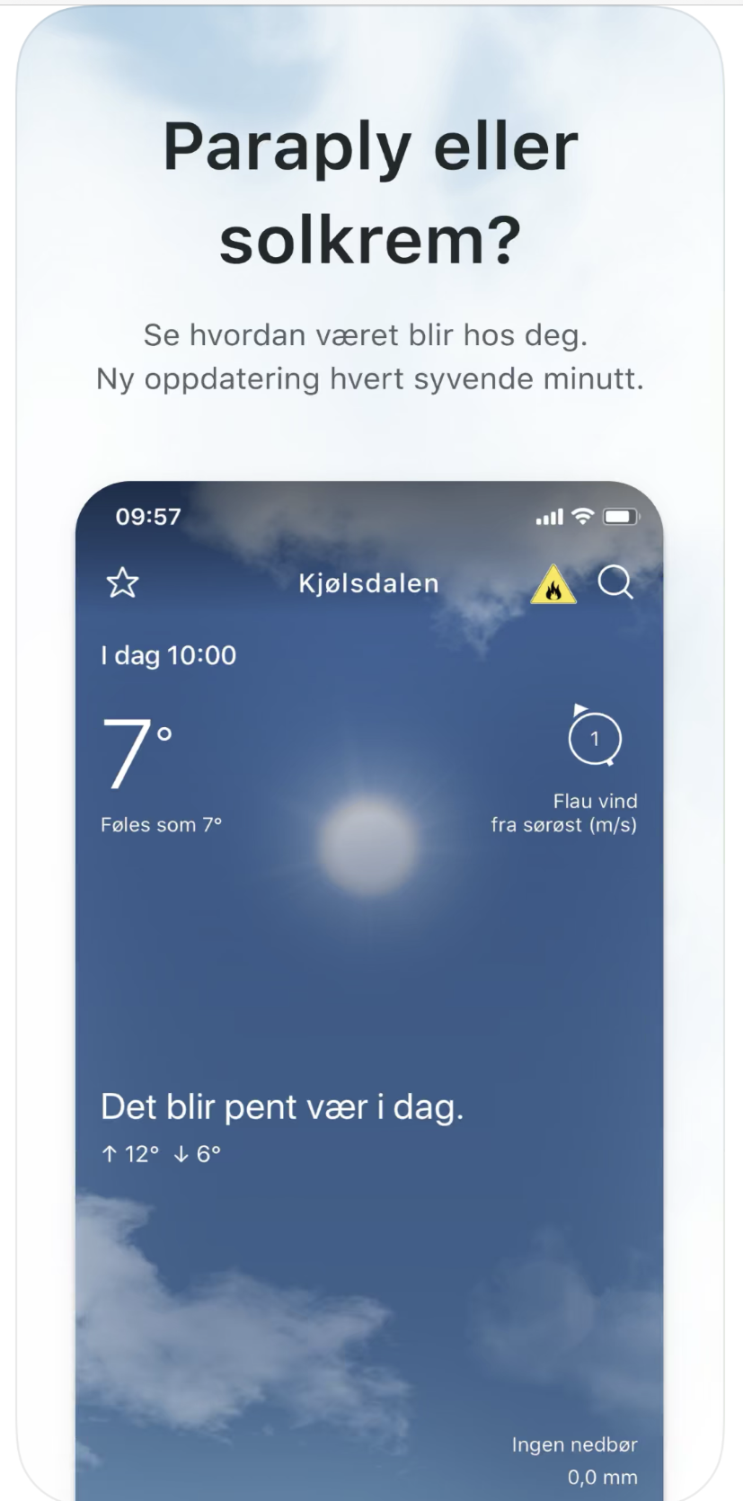 노르웨이 기상청의 홈페이지에 접속해서 날씨를 확인하는 방법도 있으나, 가장 손쉬운 방법은 노르웨이 기상청에서 제공 중인 앱 애플리케이션을 설치해서 날씨를 확인합니다.