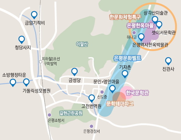 놀면 뭐하니 싹쓰리 마지막 편에 나왔던 한옥 마을 근처에는 한옥 말고도 여러 명소가 있습니다. 그곳들은 바로 ‘삼각산 금암 미술관’, ‘너나들이센터’, '셋이서 문학관', ‘한옥 전망대’, '진관사' 등입니다.
