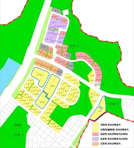 시설결정 : 제1종 전용주거지역 (용적률 100%, 건폐물 50%)