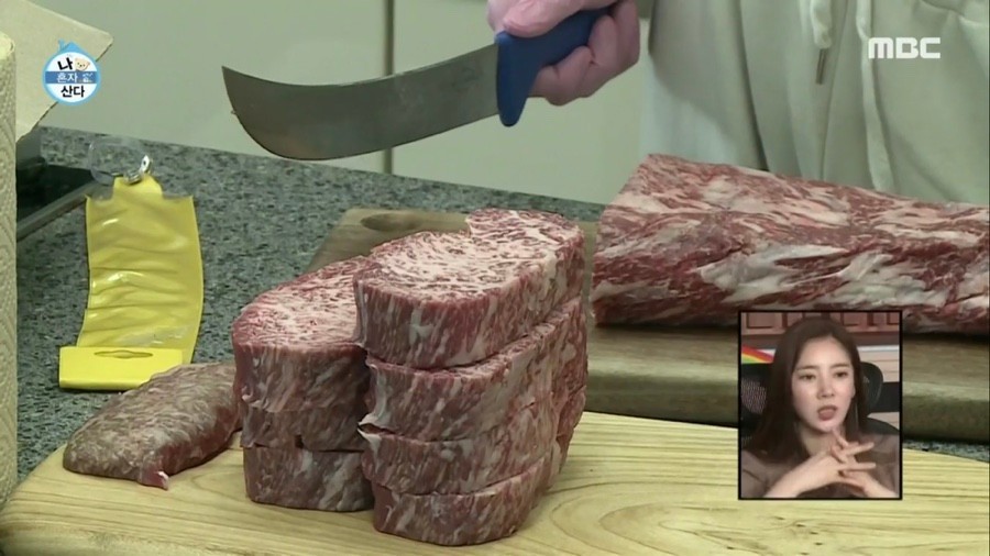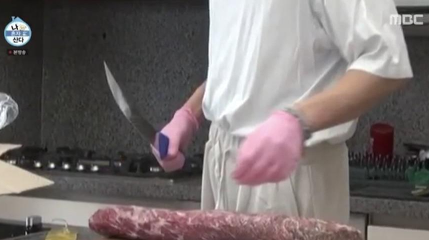 또한 요리에도 관심있는 모습을 보였는데요, 4kg에 육박하는 한우 통 채끝살을 주문해 직접 손질해 보였습니다. 두건에 요리용 장갑, 고기 전용 큰 칼까지 장착한 김영광은 능숙한 솜씨로 고기를 소분해 진공 포장하고, 마리네이드 하는 모습으로 범상치 않은 분위기를 자아냈습니다.