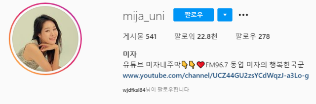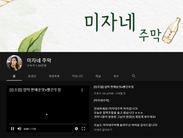 미자 씨는 본인의 인스타그램과 유튜브를 운영 중이며, 애주가로 알려진 만큼 유튜브 채널명은 '미자네 주막' 이라고 합니다.